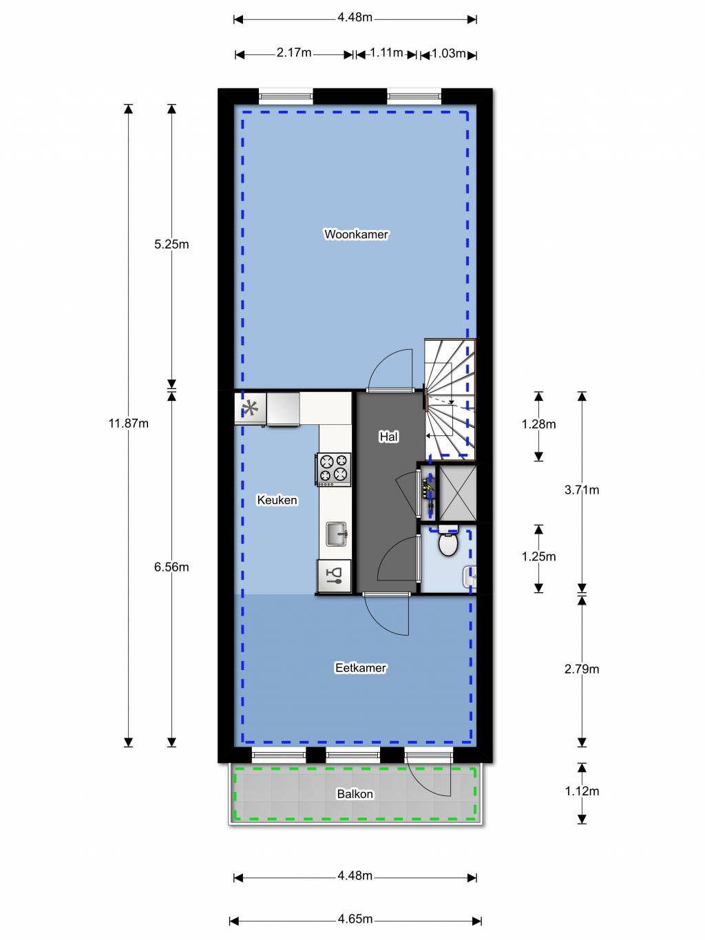 Toegang tot eerste balkon (5 m²) aan de rustige achterzijde