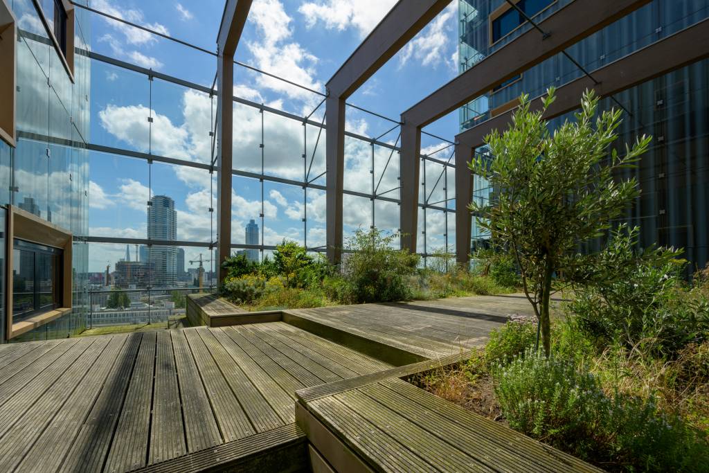 Gezamenlijke fitnessruimte, sauna en dakterras op de 14e verdieping