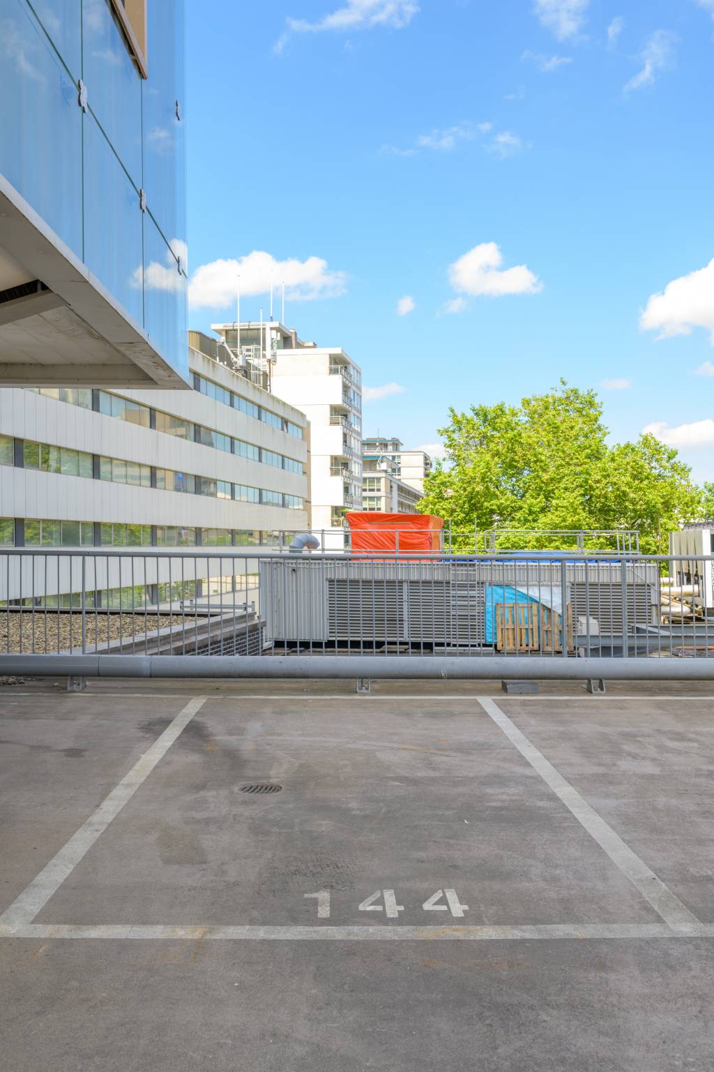 Een eigen parkeerplaats op de 6e verdieping, bereikbaar via een autolift. Huur van de parkeerplaats is verplicht (€150,-- per maand).
