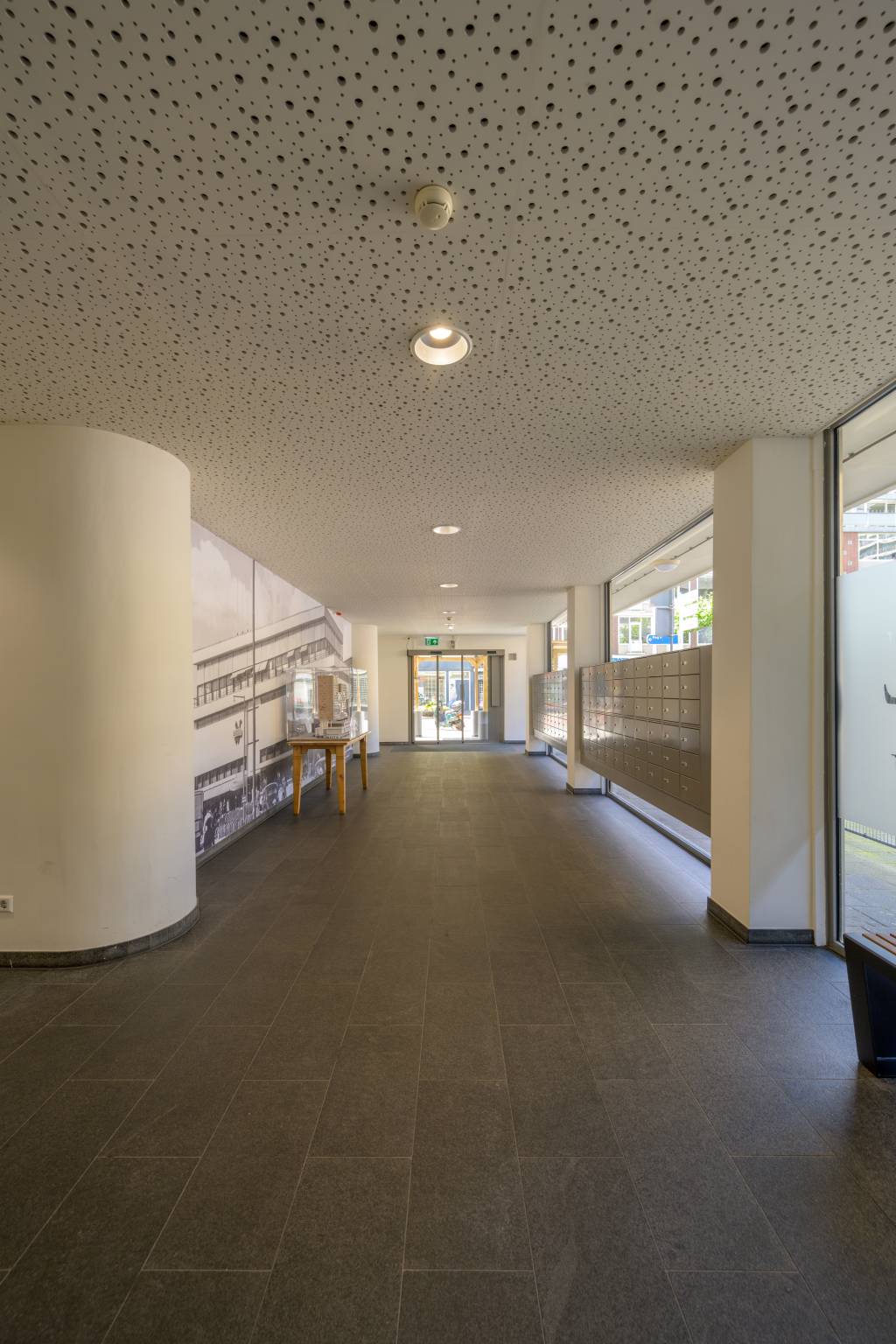 Afgesloten entree met video-intercom, brievenbussen en toegang tot de liften en het trappenhuis.